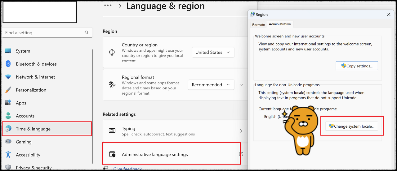윈도우 설정에 들어가서 라이언이 경례하고 있는